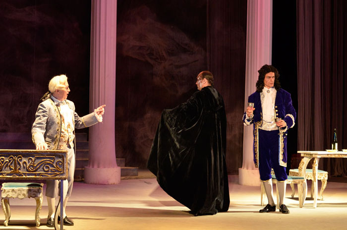 Главный персонаж оперы — Сальери. Именно его нравственные терзания движут действие вперед. Но вместо страдающего от внутренних противоречий человека перед зрителем появился сущий злодей уже во власти мрачной, темной силы, которая сама по себе — яд. Впрочем, в каких-то эпизодах это шло на пользу созданному Владимиром Ермаковым образу. Моцарт в исполнении Сергея Перминова тоже не всегда был убедителен — чуть больше, чем необходимо, поверхностен и наивно прост.