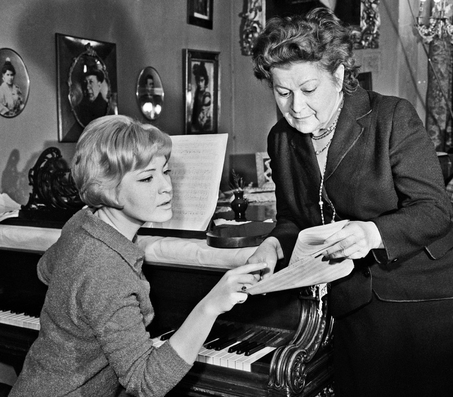 Ей было с ним интересно и ей было с ним трудно. Наверное, 19-летней девочке хотелось прогулок под луной, развлечений и магазинных вояжей. Но Максаков превратил ее жизнь в сплошную работу. Дома — ежедневные занятия и слезы. Вечером — спектакль и, как правило, успех, после которого все равно — подробный разбор и нагоняй за ошибки. Но Пигмалион сделал свое дело на отлично. Он ставил во главу угла дикцию, считал, что при вялой артикуляции не может быть хорошего звука, — и она в 1946-м описывала свой метод преподавания, а следовательно, собственную школу, так: «Придаю огромное значение концентрации слова, а значит, и звука, ибо слово от звука не отделяю. Там, где произносится слово, туда же направляю и звук. Следовательно, главные усилия ученика я направляю на развитие мышц рта, подвижности кончика языка и крепости обеих челюстей, словом, на развитие речевого аппарата». Максаков не терпел бессмысленного пения — и она всегда могла объяснить, почему «У любви как у пташки крылья» надо петь чеканно и на piano и почему сначала пела в сцене Любаши с Бомелием «Я постараюсь полюбить тебя» с отвращением и болью, а позже пела то же, омертвев как истукан. Могла даже объяснить, почему Мнишек на свидании с Самозванцем должна опустить веер именно четыре раза...