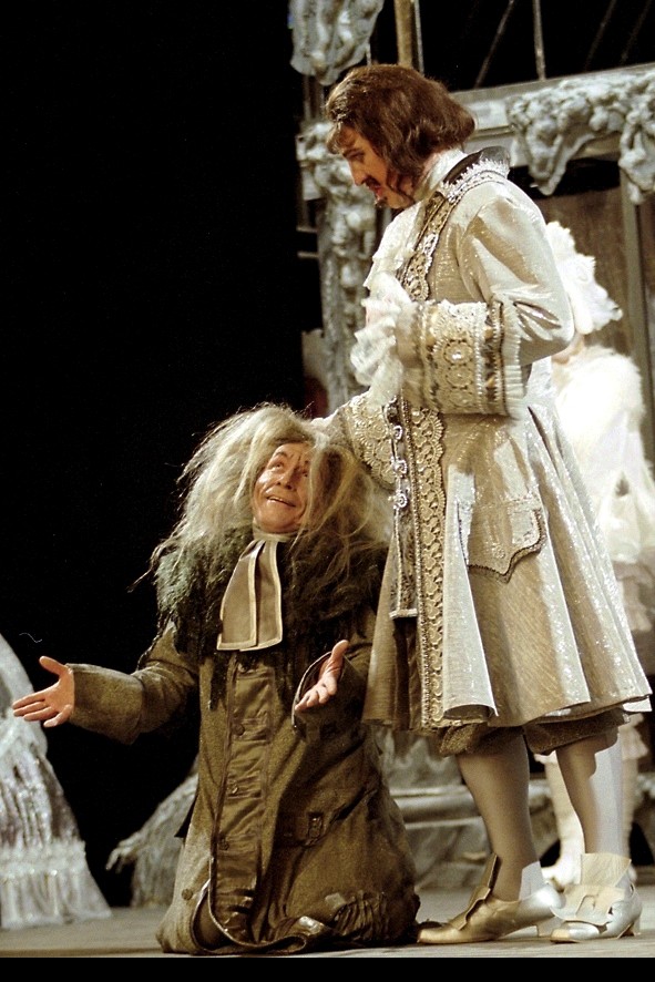 Похоже, идея музыкально-театрального приношения юбилейному городу определила зрительный образ спектакля (художник В. Окунев). Этот новорожденный спектакль, как и город, словно вылупился из яйца. На сцене вместо гостиничного хозяйства мадам Фриц — остов овальной клетки, по сцене разгуливает хор в птичьем оперении, пенясь белыми кружевами и рюшами и поигрывая, видимо, только что снесенными огромными куриными яйцами (теми, что превратит в искусство талант Фаберже). На протяжении спектакля с яйцами больше ничего решительно не происходит до самого финала (о них просто забывают). Но в конце все же опустится сверху главное яйцо, в проломе которого откроются Исаакий, Адмиралтейская игла и шпиль Петропавловского собора в миниатюре.