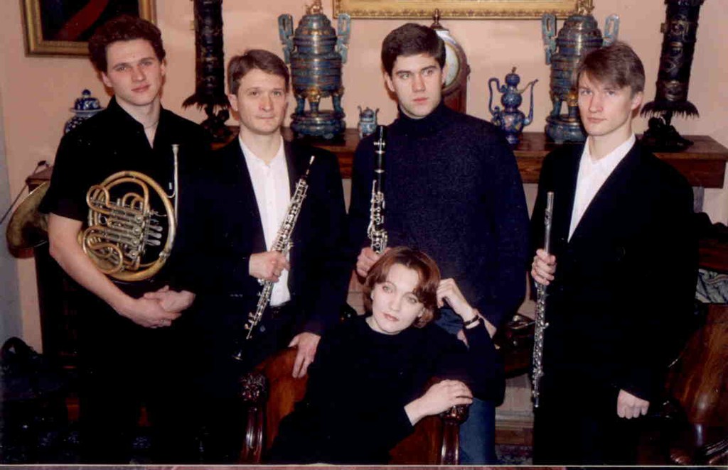 На одном из таких концертов — в небольшом зале Музея А.Н.Толстого — мне довелось побывать. В этот вечер звучала русская музыка. В подобных концертах наиболее удобная форма музицирования — вариации, дающие возможность исполнителю достаточно быстро продемонстрировать свои достоинства. К.Веневцев успешно использовал эту форму в Вариациях Алябьева, изящно сплетая флейтовые кружева кантилены и виртуозности. Вслед за тем И.Паисов доказал, что гобой не зря называют «духовой скрипкой»: под его пальцами элегантный француз не уступал ни в певучести, ни в техническом совершенстве своей старшей итальянской родственнице в Вариациях Римского-Корсакова. А потом прозвучала очаровательная музыкальная виньетка-вальс «Елка» В.Ребикова, в котором духовики вместе с пианисткой Натальей Щербаковой сумели создать атмосферу трогательного, слегка сентиментального старинного домашнего музицирования. Н.Щербакова — уверенная ансамблистка, она умеет чутко слышать партнеров, то как бы высвечивая их, то беря лидерство на себя, и это тем более похвально, что ей приходилось преодолевать сопротивление старого, не слишком гибкого рояля.