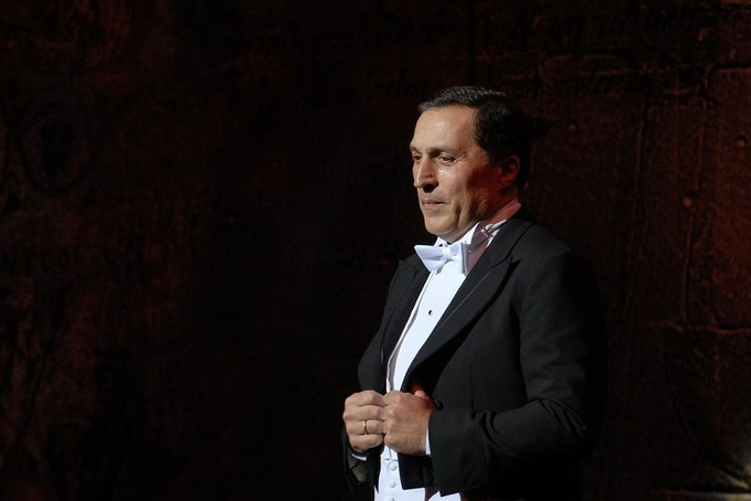Виновник торжества Паата Бурчуладзе тоже претерпел метаморфозы сравнительно с началом 80-х, когда побеждал на Конкурсе Чайковского, а затем приезжал к нам с Тбилисской оперой. Его эволюция шла в ином направлении — не столько шаляпинском, сколько гяуровском, в смысле приоритетности красивого, благородного певческого звука как самостоятельной ценности, что не исключает собственно актерской выразительности, но и не ставит ее во главу угла. Оба направления равно доказали свою жизнеспособность и могут прекрасно уживаться в рамках одного спектакля или концерта, в чем мы лишний раз имели возможность убедиться. Другое дело, что у представителей последнего сугубо вокальные дефекты обращают на себя внимание в несравненно большей степени. Например, у Бурчуладзе порой, когда он поет в полный голос, заметно качается звук. Тем не менее его бархатный бас по-прежнему радует поклонников. Наиболее яркое впечатление певец произвел в большом финале первого акта вердиевского «Аттилы», где вышеозначенные проблемы ощущались менее всего, а многочисленные достоинства вышли на первый план.