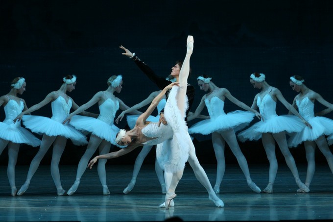 Лебединые же сцены лишены исторических посылов, как сами девушки-птицы — привычных пачек. Лебединое одеяние — длинные пышные юбки-перья, скрывающие линии любимых движений. Наивный принц Йохана Кобборга, коему жениться рановато, попадает в руки «расчетливой» Одетты-Одиллии, которую довольно схематично, без «душевных затрат» исполняет японка Мияко Йошида. Все поэтические переживания «достаются» Зигфриду, а его героиня с первого появления и до гибели в финале остается бесстрастной. Самый популярный балет золотого фонда с момента рождения не оставлял отечественных подмостков, а потому развивался поступательно и безостановочно. Переосмысливался много раз: и для нас уже не так важно, что Шута в премьере Л.Иванова — М.Петипа действительно не было, а пачки балерин отличались иным фасоном. Причудливый вариант гостей нам и не мог «глянуться» — слишком дороги, понятны и близки российские «Лебединые озера».