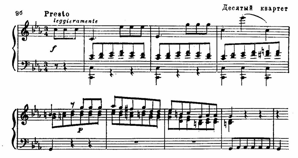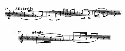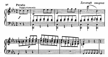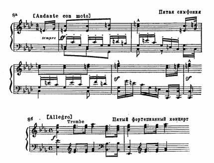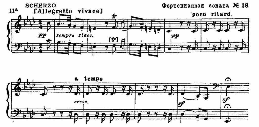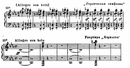 Резкие, тревожные интонации, построенные на повторяющемся стаккатном звуке, придают острую взволнованность и драматизм многим бетховенским темам: