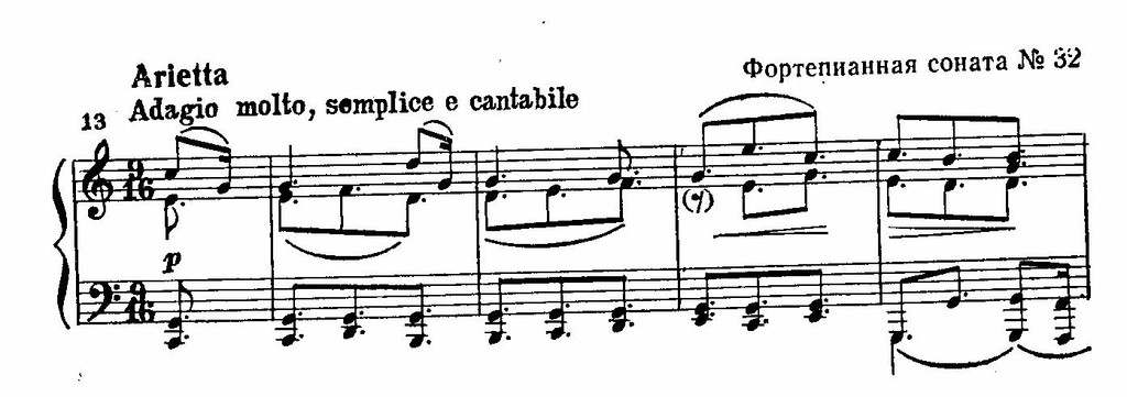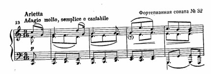 Вместе с тем в музыке, основанной на народно-жанровых ипесенных темах, Бетховен обращается к вариационным приемам развития. В вариациях на ариетту в последней фортепианной сонате, на вальс Диабелли, на темы медленной части и финала Девятой симфонии, в сонате ор. 109, в квартете op. 127 и многих других Бетховен открывает неведомые дотоле художественные возможности вариационной формы – быть может, самой старинной из всех музыкальных форм гомофонно-гармонического стиля.