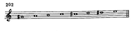 Так, например, замечательный поэтический эффект созерцания, которым завершается медленная часть f-moll'ного концерта, исходит из такого расположения звуков простейшей гармонии, которое именно на фортепиано порождает богатейшие обертонные наслоения (пример 198 а).