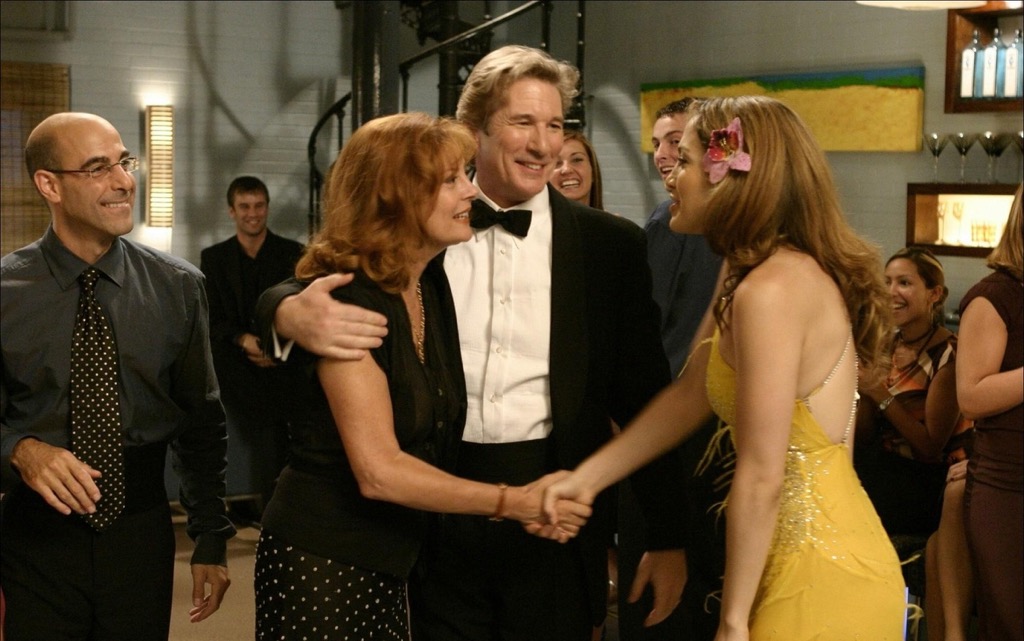 Ричард Гир, закономерный в главной роли после чечетки «Чикаго», играет сегодняшнего немолодого, вполне благополучного и тоже чикагского юриста с прекрасной женой (Сьюзен Сарэндон), двумя прекрасными детьми, уютным домом и собакой для полного счастья. Но всякий раз он едет домой на метро (это быстрее, чем на машине), после того как опять составлял чье-то завещание. Сидит в углу, смотрит в окно. Безнадежность обыденности не скрасить никаким внешним благополучием. И когда его взгляд из вагона каждый день начинает падать на одну и ту же женскую фигуру (Дженнифер Лопес) в темном окне рядом с вывеской «Школа танцев», дальнейшая логика происходящего уже, очевидно, связана не с ура-голливудской схемой, а с этим незамутненным и вполне отчаянным взглядом.
