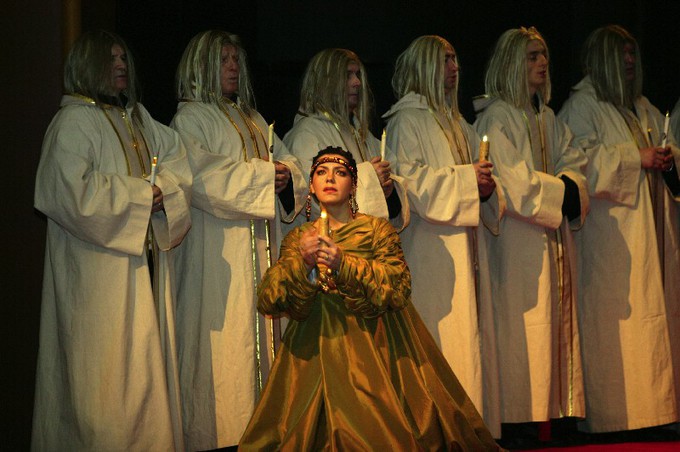 Но даже если бы и заявил — не в том суть. Каким образом известный клипмейкер и рекламный дизайнер, а в последние годы еще и режиссер, прежде никак не связанный с классическими музыкальными жанрами, оказался вдруг почти одновременно востребован в главной цитадели оперно-балетного академизма Большом театре (как автор нового фирменного стиля), и в являющейся прямым антиподом последнего Новой Опере (как постановщик одного из шедевров отечественной классики) — тайна, покрытая мраком. И поскольку речь идет о свершившемся уже факте, нам остается, не задаваясь вопросами, не имеющими сколько-нибудь рационального ответа, взглянуть на результат. Который, если брать за точку отсчета виктюковских «Искателей жемчуга», представляется отнюдь не столь разрушительным.
