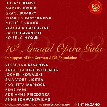 Состоявшийся 8 ноября 2003 года юбилейный, десятый концерт собрал на сцене Немецкой оперы преимущественно тех, кого сегодня принято относить к "сливкам" оперного мира. В числе солистов, правда, мы не увидим имен Чечилии Бартоли, Марии Гулегиной или, например, Хосе Куры, но тем не менее Кенту Нагано, под чьим управлением прошло праздничное мероприятие, удалось привлечь весьма представительный состав исполнителей. Запись, бесспорно, интересна тем, что достаточно красноречиво дает весьма репрезентативный срез современной оперной жизни, а также возможность оценить и сравнить голоса, наиболее востребованные в крупнейших театрах мира. Словом, "лицо оперы" начала третьего тысячелетия предстает в данном альбоме во всех своих "блеске и нищете" одновременно. Стоит также отметить, что программа концерта ориентирована на не слишком требовательный меломанский вкус, и включает преимущественно "ударные" номера оперной литературы. Впрочем, учитывая статус мероприятия, такой подбор представляется оправданным.