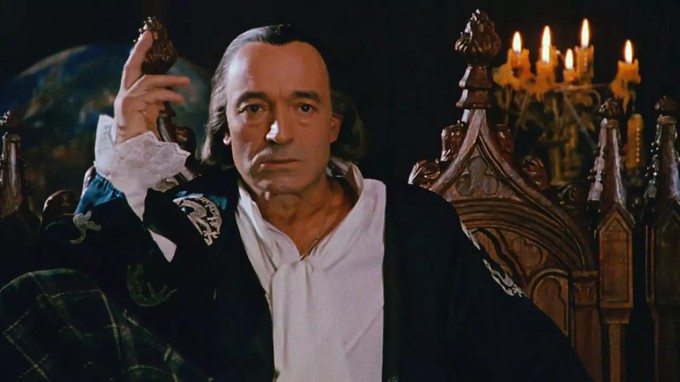 Пару ему составила Анастасия Вертинская — Маргарита. Лицом к лицу их почти не показывают. Если смотрят с экрана на нас глаза женщины, то мужчина представлен затылком, и все из-за боязни экранной неправды, которая идет от некоторого возрастного несоответствия булгаковских любовников в версии Кары. Ему нужно было чем-то и кем-то жертвовать, таким Мастером или такой Маргаритой, чтобы уверенно смотреть правде в глаза. А.Вертинская, к тому времени уже довольно мало снимавшаяся, ведет себя в кадре иначе, чем остальные, и выпадает из общего контекста повествования и существования. Кто она, эта женщина — совсем не ясно, и что ею движет, и почему избрана именно она Мастером и Воландом? Ее появление вообще фрагментарно. Сцена бала, по счастью, не стала воплощением вопиющей пошлости, что всегда вероятно при сценическом и экранном ее воплощении. Разве что в блужданиях обнаженных женских тел в кустах есть что-то вампукообразное.