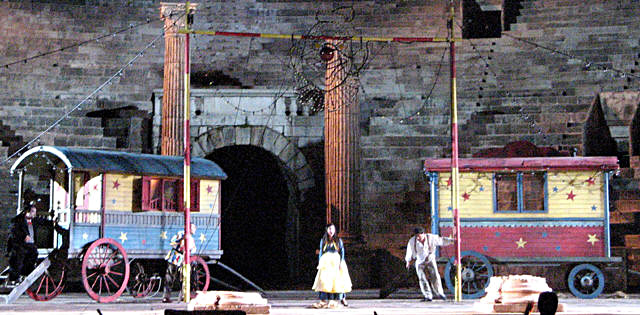 Как обычно, рядом с двумя премьерами на афише фестиваля три других популярных названия. Как часто случается, это праздник в честь Франко Дзеффирелли: в его постановках показываются «Кармен», «Аида» и «Мадам Баттерфляй». Постановки подчас «с бородой» (премьера оперы Бизе состоялась аж в 1995-ом году!), но «кассовые». Об искусстве здесь, подчас, речи не идет: это развлечение для широкой публики, львиную долю которой составляют туристы.