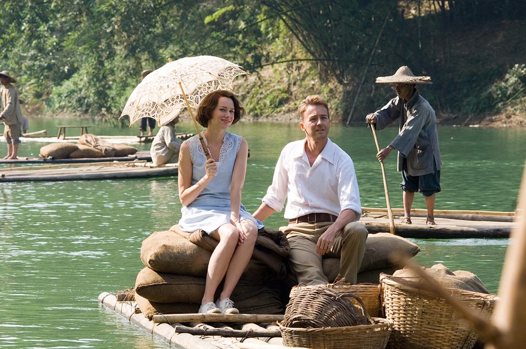 Вся эта рутина фильмом облагорожена. Бомонд Лондона и Шанхая снят в лучших традициях ретро — с кружевными платьями, фраками, балами и концертами. Для съемок провинции Каррэн несколько месяцев провел в местах реальных событий. Они до сих пор не тронуты, поэтому пейзажи и погода легко приобретают космический масштаб. Туманные горы, зеленые долины, извилистые тропинки, экзотические цветы, муссонные ливни, спокойная река выглядят как архетипы самих понятий. А в целом кадр выглядит словно музыка — под стать музыке Александра Десплейта, уже получившего «Золотой глобус» за саундтрек. Люди в кадре — лишь кратковременные детали с мелкими, глупыми страстями, только избавившись от которых могут вписаться в окружающую среду.