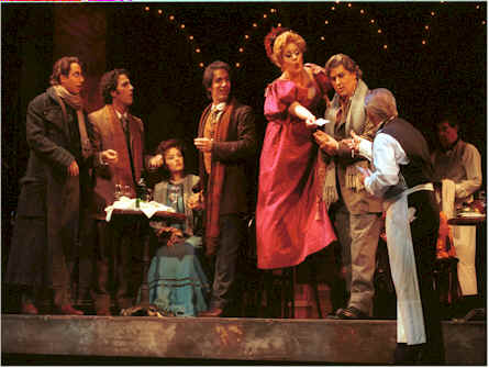 На мою долю выпала самая романтическая опера Джакомо Пуччини - "Богема". Это был второй спектакль возобновления копродукции 2003 года с Вашингтонской национальной оперой. Постановка Николь Бовье поразила таким дотошным реализмом, что вполне может конкурировать с габтовскими спектаклями эпохи сталинизма: если это мансарда, то она густо усеяна подробностями богемного быта; если уголок Латинского квартала, то картонные дома в натуральную величину грозят обрушиться на зрителей партера и оркестровую яму. В своем стремлении к реализму (или даже натурализму) мадам Бовье слишком уж прямолинейна - умирающую Мими бьют не театральные, а всамделишные конвульсии, и право, возникают опасения за исполнительницу главной роли. Действие оперы разворачивается в точном соответствии с либретто и вам ничего другого не остается, как по-детски доверчиво внимать происходящему на сцене (вместо того, чтобы выискивать сокрытые смыслы и подтексты).