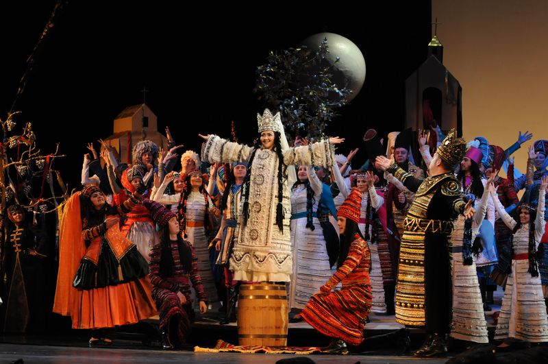 Если этнографические эпизоды — прежде всего готовящаяся грузинская свадьба — безусловно, воодушевляют постановщиков и своей веселой цветастостью как раз и позволяют говорить о детском утреннике, то загадочный образ Демона так остается для всех, в том числе для режиссера, полной загадкой.