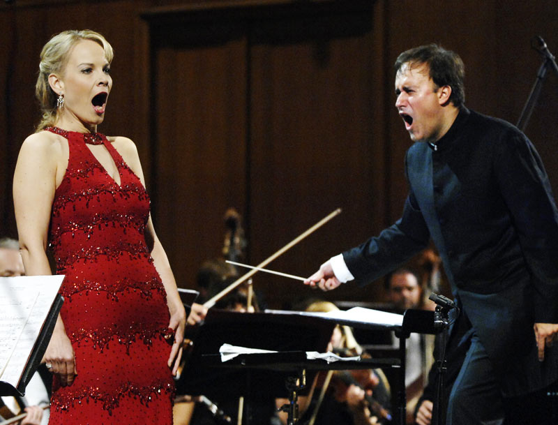 Но все же Элина Гаранча нечто совсем иное. Это не витальная раскрепощенная красотка, а головастая, упрямая, осторожная, сдержанная до поры до времени, стильная европейка, совсем не из тех, кто с ходу завоевывает публику. Похоже, сопровождавший ее британский супруг Карел Марк Чичон (хороший дирижер; это не всегда совпадает) легче освоился с вверенным ему оркестром «Новая Россия», чем она — со спокойно-настороженным залом. У нас все-таки любят погорячее, что и говорить.