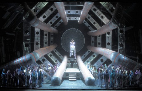 Действие оперы по версии постановщиков происходит после ядерной войны на земле и в открытом космосе. Люди в скафандрах и хоккейных формах, с клюшками, пушками и ноутбуками ходят и летают, да еще поют и танцуют при этом. Не сомневаюсь, что найдутся критики, которые станут подробно описывать происходившее на сцене, выявляя скрытые подтексты и глубокие смыслы. Вы им не верьте! Вся эта бессмыслица может заинтересовать лишь десятилетнего ребенка, никогда не видевшего «Звёздных войн», «Чужих» и тому подобной чепухи. Очевидно, что главная цель постановщиков состояла в том, чтобы посетители «культурного центра» не заскучали в течение пяти с лишним часов, отвлекаясь на музыкальное сопровождение.