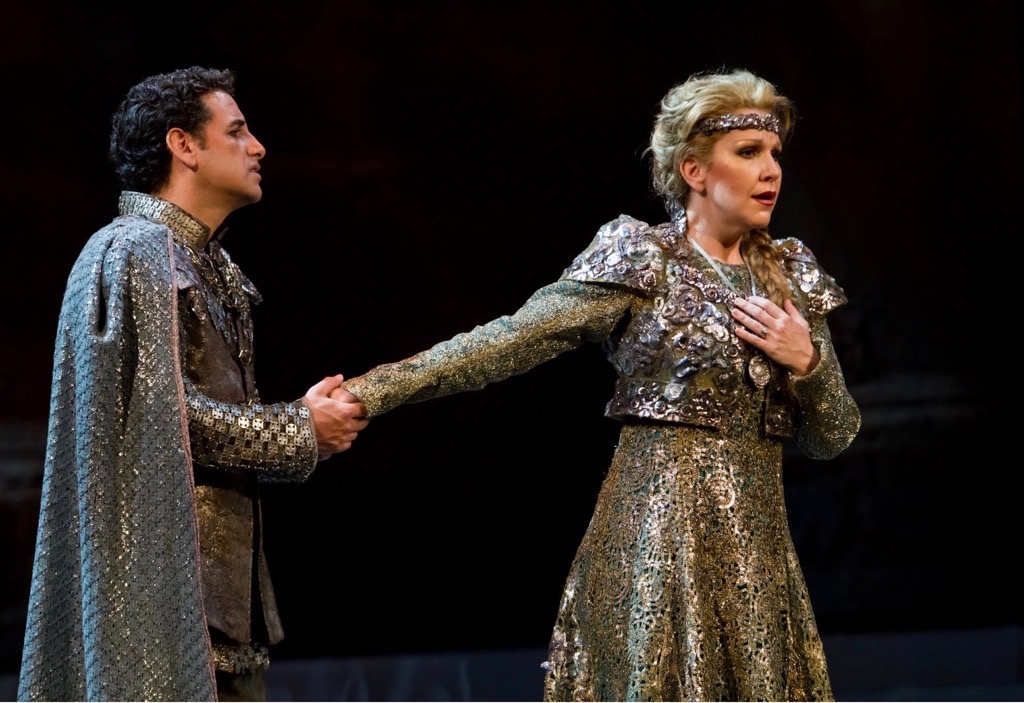 Такая слегка мистическая партия очень идет Флоресу: его арии поются не на полном ходу, как где-нибудь в «Золушке» и «Севильском цирюльнике», они местами похожи на «вставные», но певец уже силой драматического таланта включил их в общую канву. Все его выходы сорвали взрывы зрительского восторга, но он как истинный рыцарь своего образа быстро исчезал со сцены, чтобы дать поблистать дамам — Джойс ДиДонато (Элен) и Даниэле Барчеллоне (Малкольм) — подлинным героиням.