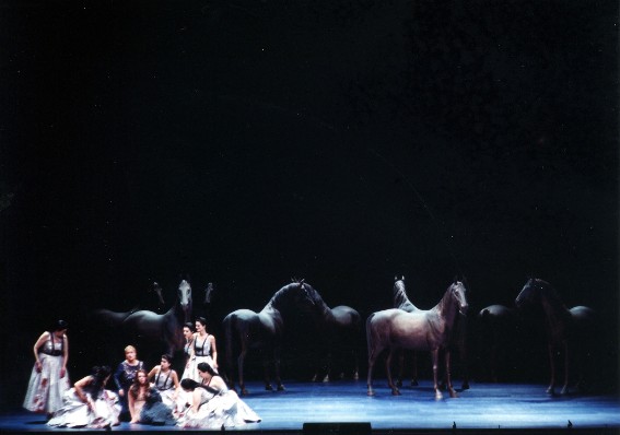 Говоря подробнее, невозможно обойти третий акт. "Полет Валькирий" - беготня девах, одетых как куклы, которые ловят и упорядочивают каких-то мужичков в костюмах, которые в свою очередь напуганы и мечутся - какие-то безмозглые манекены. А на заднем плане «величаво» пребывают скульптуры лошадей. Прямо так невольно и вспоминаешь Свифта.