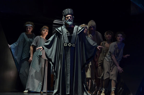 Именно миф от лица Илии и рассказывает зрителям режиссер-постановщик спектакля Михаил Кисляров, рассказывает очень спокойно, повествовательно, как серьезную сказку для взрослых, но режиссер как таковой в этом спектакле не доминирует. Он как бы деликатно отдает себя во власть потрясающе впечатляющей сценографической фантазии Виктора Вольского, светового «волшебства» Владимира Ивакина, а также визуальной классической строгости и гармоничности постановочного «гардероба», придуманного Ольгой Ошкало. Вообще, в этом спектакле классически традиционного, пожалуй, больше, нежели авангардного. По этой причине древний кровавый миф с мощно проступающей морально-нравственной подоплекой, воспринимается очень мягко, без какого-либо надрыва, без какой-либо агрессии, без какой-либо ажитации или эпатажа. На мой взгляд, в этом-то как раз и заключается общее располагающее и очень сильное впечатление от спектакля, а пословица «Лучшее – враг хорошего» наиболее точно характеризует эту достаточно простую, незамысловатую, но добротную постановку, любое «улучшение» которой было бы ей лишь во вред.