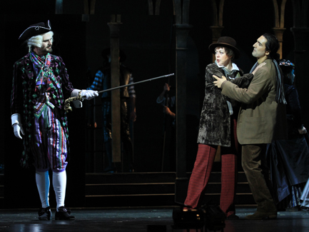 Артистам легко в таком спектакле, где музыка, образ каждого индивидуального героя и общая концепция находятся в гармоническом согласии. Отсюда много удач – и вокальных, и актерских, и в больших, и в малых ролях. В центре спектакля – Гофман Нажмиддина Мавлянова: романтический поэт, порывистый и наивный, изящный, гибкий, какой-то нездешний и оттого остающийся ни с чем – с разбитыми мечтами, с утраченными иллюзиями. Артист совершенно растворился в образе – говорить о вокале в такой ситуации просто неуместно: игра и пение настолько слиты воедино, что разбор по отдельности решительно невозможен. Скажу лишь, что партия сделана превосходно, на уровне лучших мировых стандартов – есть в ней и французский шарм, и меланхолия, и порывистость: артист большой музыкальности, Мавлянов сумел создать абсолютно достоверного, бесконечно притягательного поэта-романтика.