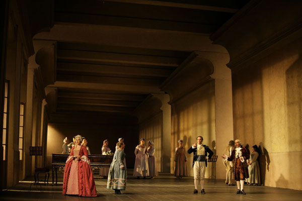 На видео можно зафиксировать мизансцены – и этого вполне достаточно, чтобы «развести» спектакль, но режиссерскую душу, вложенную в него, запечатлеть невозможно. Именно поэтому в отсутствие режиссера-постановщика всё зависит от певцов-актеров и, безусловно, дирижера (об этом речь еще впереди). В отношении же присутствия в той или иной постановке Стрелера его режиссерской души именно «Così fan tutte» занимает особое положение: этот оперный спектакль, как и полагается, был поставлен с оперными певцами, оркестром и дирижером, но его премьера состоялась не на оперной сцене. Думается, что это обстоятельство всегда вселяет особый пиетет и особое радение режиссерам его последующих возобновлений. Лично для меня постановка «Così fan tutte» стала отправной точкой постижения оперной режиссуры Стрелера, поэтому говоря о «Свадьбе Фигаро», я просто не могу не отталкиваться от увиденного ранее.