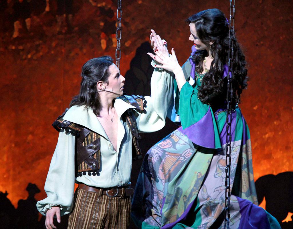 Вторичны не только отдельные мотивчики и настроения, вторичны целые персонажи. Капитан де Ла Улетт – располневший и дослужившийся до капитана Арамис Дунаевского. Атаман Пьер – выживший после падения с колокольни Нотр-Дама, разжалованный из священников и подавшийся в разбойники отец Фроло (во всяким случае, так играет его лидер русской версии мюзикла Каччанте Александр Голубев). А принцесса Анриетта – и вовсе какая-то малороссийская доня Проня Прокоповна, телепортированная во Францию без каких бы то ни было поведенческих изменений.