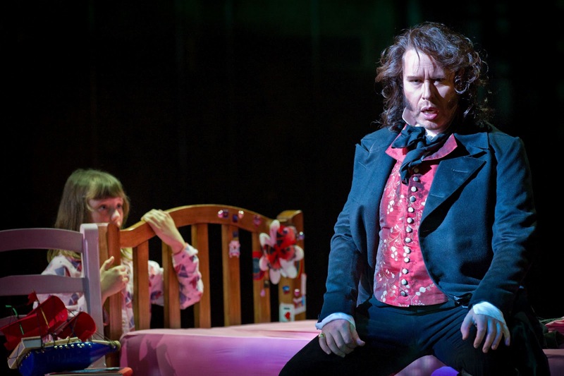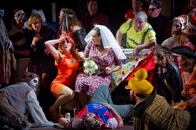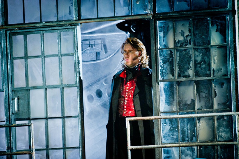 Но потом, как мне показалось, романтизм уступил место реализму, и сцена между Эриком, влюбленным в Сенту с детства, происходит на фоне того же самого цеха, что вполне понятно, потому что Эрик — менеджер производства (Стюарт Скелтон), а Сента (Орла Бойлан), — одна из работниц. Оба — в современных одеждах, и оба, удивительным образом, идеально подходящие друг другу физически — слегка упитанные, столь узнаваемые «оперные» фигуры. Эти эпизоды проигрывают чисто визуально в сравнении с началом и финалом оперы, они замедленны и немного скучноваты. Хотя эти замечания никак не относятся к вокалу.