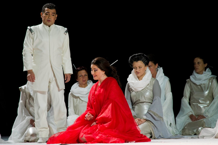 Не случайно, что на этот раз исполнение сопрано направлял бесконечно талантливый дирижер Валерио Галли. Галли, дебютировавший в прошлом году в той же опере на том же фестивале в свои тридцать с небольшим, подтвердил мои ошеломляюще позитивные впечатления. Опять я был увлечен широким рядом динамических контрастов в сочетании с такой же богатой палитрой выразительности звука и его способностью вести повествование чрезвычайно строго и волнующе. Хотя ненасыщенные атаки, точность и ясность, кажется, являются его маркой, тосканский дирижер никогда не забывает, что Баттерфляй является одной из наиболее трагических (и даже садистских) человеческих драм в истории оперы. Он продемонстрировал эмоциональную вовлеченность своей героини в трагедию. Тем не менее, тревожное и зловещее напряжение скрыто в той теплоте, которой он ее окутывает.