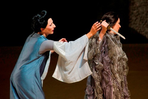 Передвижения по сцене отличались гармоничной, изысканной ритуальностью, выгодно отличающей японскую трагедию. Рожденная в Белфасте, но уже длительное время проживающая в Италии, режиссер-постановщик Хьюитт приехала в Пизу, чтобы лично проконтролировать мизансцену с тем, чтобы в итоге представление не обладало той банальной атмосферой, так часто присущей многочисленным возобновлениям старой постановки.