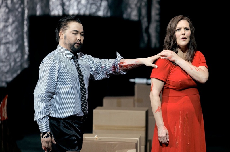 Корейский баритон, выпускник Миланской консерватории Сэмюэль Юн, оперативно вошедший в спектакль всего за пару дней до премьеры вместо ретировавшегося Евгения Никитина, произвел, пожалуй, самое благоприятное впечатление из всего ансамбля: плотный звуковой поток, грамотная фразировка, округлость звукоподачи, академическая корректность и даже сценическая убедительность — всё было хорошо, кроме: вот не хватает харизматичности, демоничности и экстатичности такому исполнению. Слушаешь и не понимаешь, почему этот персонаж имеет такое важное значение для понимания всего творчества Вагнера, почему эта партия, эта роль так притягивает и так пугает одновременно. Между тем, невольно сравнивая это исполнение партии Голландца Юном с исполнением этой же роли в майском спектакле Мариинки Никитиным, я вынужден заметить, что уровень вокально-драматической убедительности у Юна был на порядок выше, чем у Никитина. И если это не случайность, то от отмены участия нашего певца в Байройтском фестивале выиграли все.