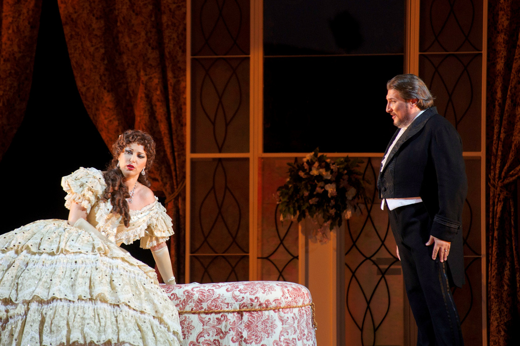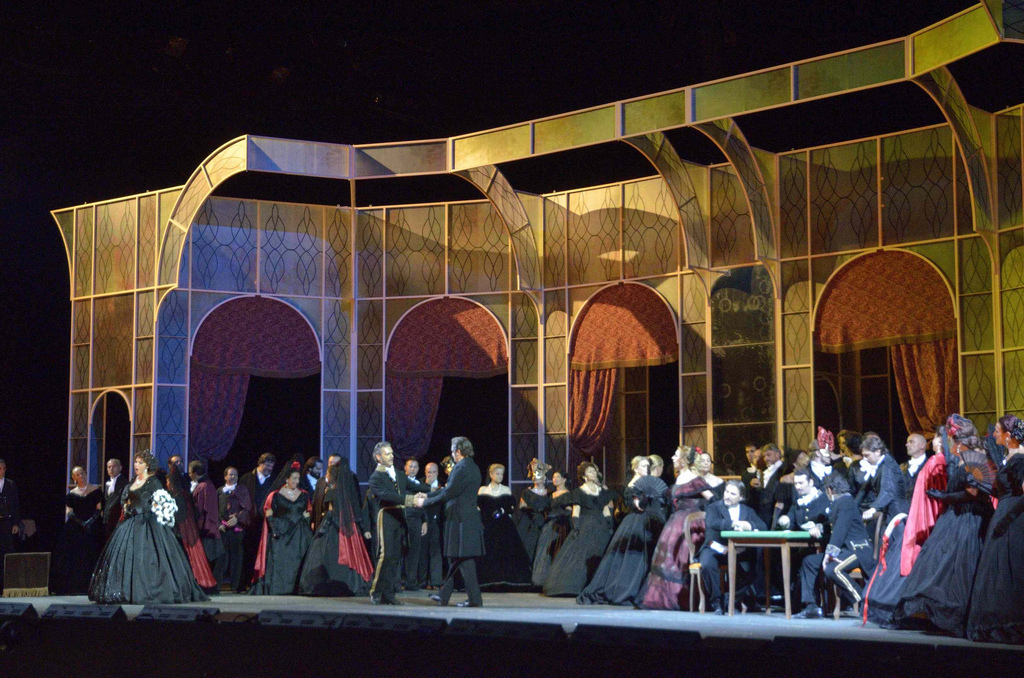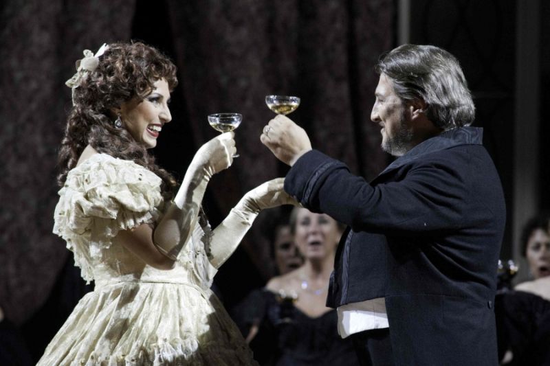 Возможно прочтение партитуры дирижером Фабрицио Марией Карминати понравится не всем, но я уверен, что даже его критики не смогут остаться равнодушными к его когерентности и оригинальности. Полноценное, содержательное звучание с увязкой с медленными темпами и едва заметным интересом к выделению цветовой гаммы породили картины напряженной трагедии, пропитанными неким мрачным фатализмом, — почти черно-белый экспрессионизм. Именно далекое от наслаждений общество полностью погружается в гнетущую пустоту. Общество без тени надежды на спасение. И непрерывное мартеллато скрипок в сцене вечера у Флоры превращается в настоящую пляску смерти. Отсутствует лихорадочное, невротическое желание жизни, обжигающее так много Виолетт: вечер первого акта характеризуется исключительно хрупкостью и уязвимостью, переполненными безжалостной неумолимостью. Так, во втором акте нет ни протеста, ни борьбы. Она может только поддаваться чему-то, что являлось предвестником беды с самого начала.
