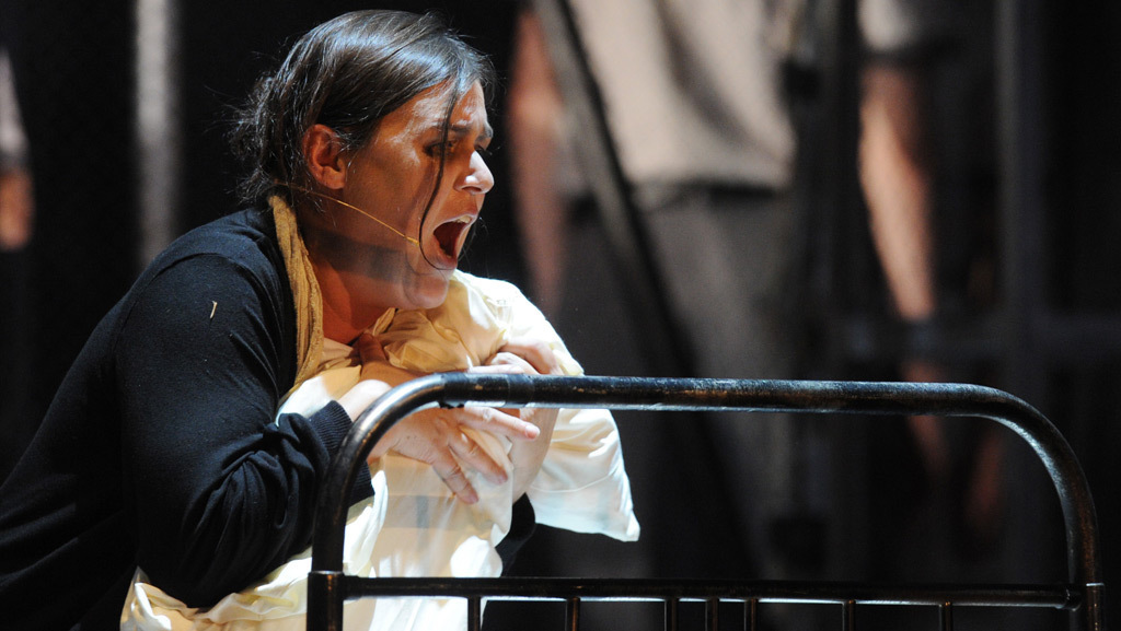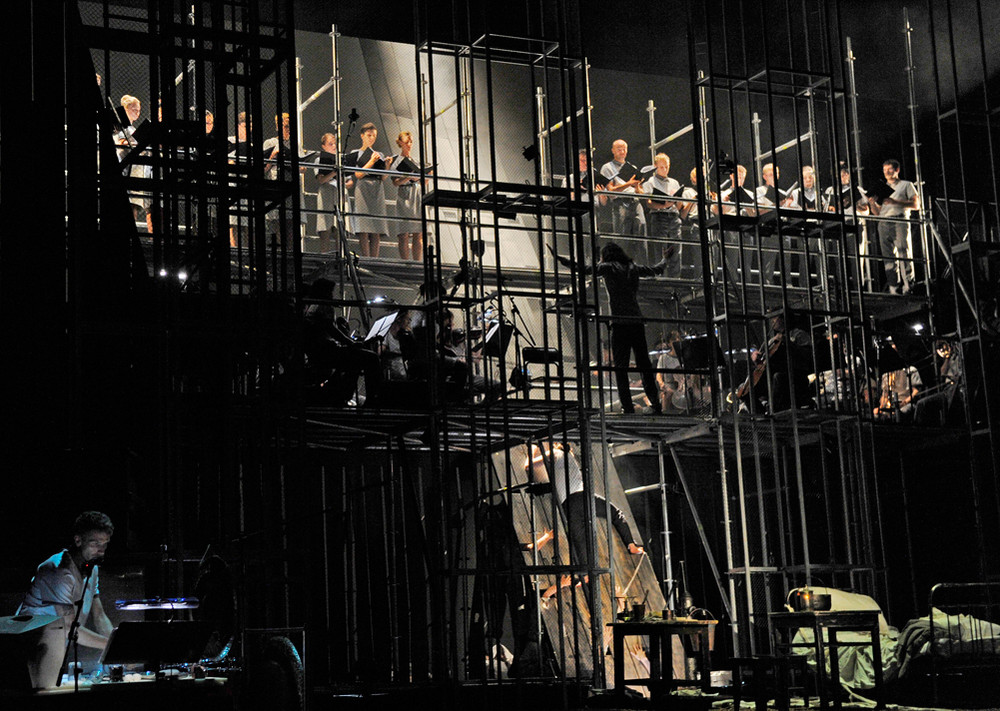 Впрочем, либретто на немецком языке с жизнеописанием святого имеет мало общего, текст достаточно жесткий, натуралистичный и вызывающий. В опере предусматривается не только пение, но и художественное чтение, в московской постановке текст певцов оставили немецким (с русскими субтитрами), а вот текст чтеца (его постановщики в Большом поделили аж на 17 чтецов и чтиц) Сергею Невскому, собственноручно делавшему его авторизованный перевод на русский язык, пришлось изрядно смягчить.
