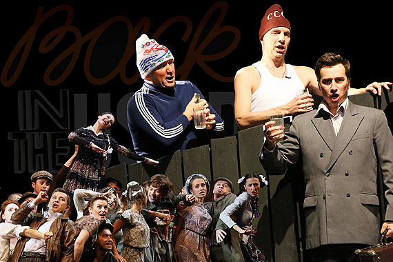 Главный, на мой взгляд, в том, что сюжеты большинства «эпизодов» оставались отдельными, с как максимум переходящими через два-три номера героями, но не с единым сюжетом на весь спектакль. Не знаю, минус или плюс, но факт — глубокое впечатление, которое на постановщиков произвел фильм «Стиляги» Валерия Тодоровского, наверняка не успевший забыться и у зрителей. Тут вам и заморские пластинки, которые прячут под запахнутым плащом, и комсомольское собрание с лишением билета, и беременность от покинувшего советский берег негра. Наверное, изобразительные и бюджетные возможности кинемотографа в любом случае шире, чем оперной сцены, и провоцировать зрителя на сравнение не стоило, это же совсем другой жанр.