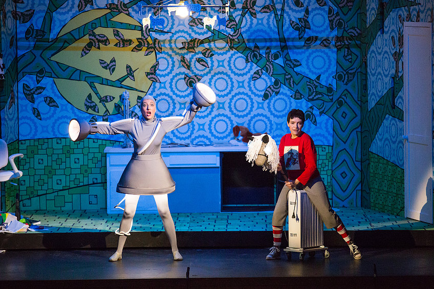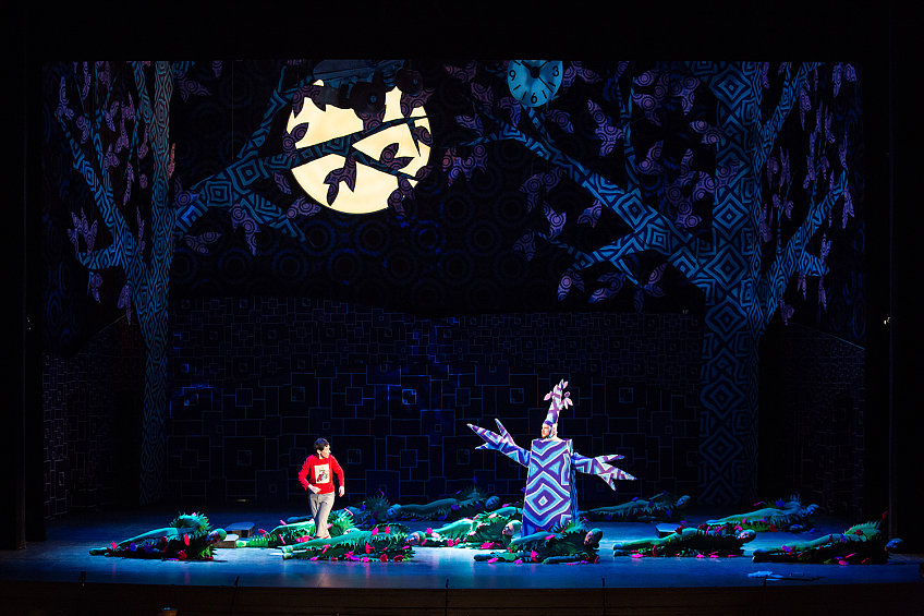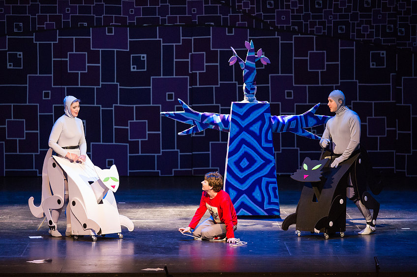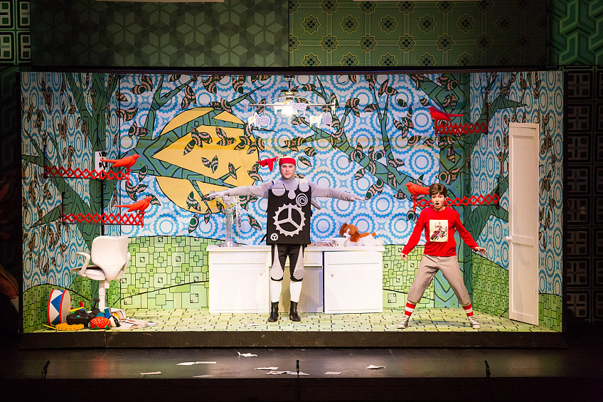 Молодой режиссер Екатерина Василёва — последнее время она нарасхват во многих проектах («Открытая сцена», «Опергруппа», Камерный театр им. Покровского) — сочинила спектакль для детей на либретто в русском переводе. Перевод этот, судя по всему, кочует по театрам. Им уже воспользовались в Театре им. Сац, не исключено, что он пригодится и для грядущей январской постановки в Большом. Не то чтобы в самом этом факте было что-то плохое — в конце концов, мы располагаем поистине драгоценной традицией русских музыкальных переводов. Но когда Мама посреди икеевского интерьера с компьютерным креслом сердится, что мальчик залил чернилами ковер; оживший электрический Светильник (вместо оригинального Огня) бранит шалуна за то, что тот разбросал спички, а Летучая мышь поет про каких-то осиротевших птенцов (вместо мышат), воспринимается все это не как режиссерские находки, а скорее как некий курьез, недогляд литредактора.