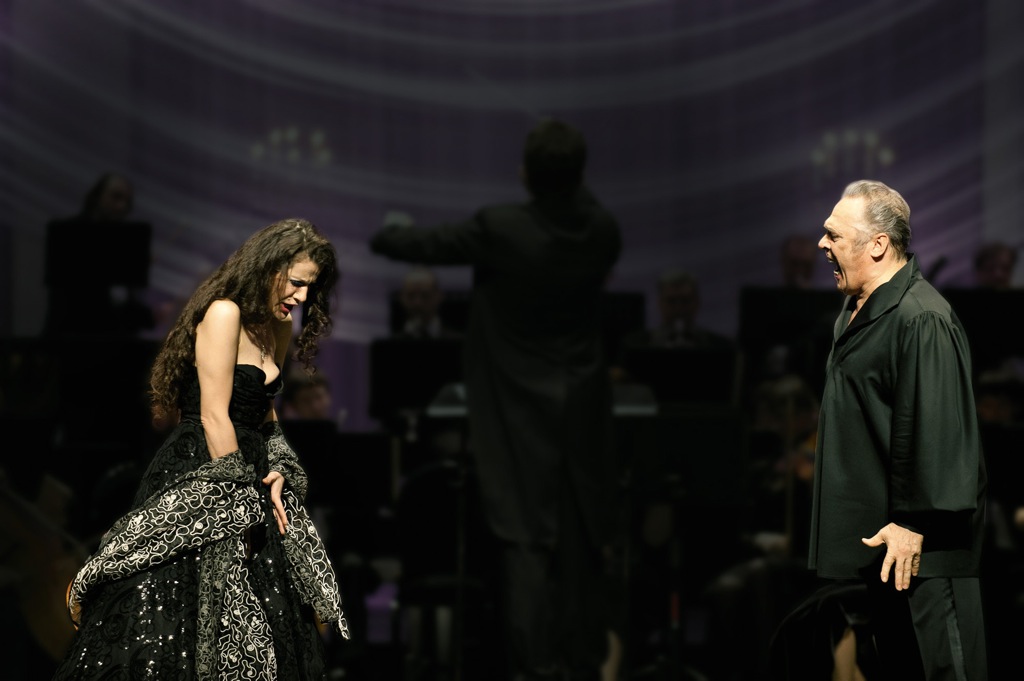 Но так сложилось, что и сегодня Масканьи многие считают «автором одной оперы», и «Cavalleria rusticana» идёт во всём мире с колоссальным отрывом по популярности от всех прочих опусов маэстро. В Москве она — в репертуаре «Новой оперы», в 1980-е — начале 1990-х была в афише Большого, но почему-то, когда говорят об этой опере в московском контексте, чаще всего в памяти всплывает её концертный вариант тридцатилетней давности в БЗК, записанный на радио и оттого широко известный. Учитывая, что нынешний концерт состоялся вновь в этих стенах, аналогии напрашивались сами собой. Тогда в главных партиях блистали бесспорные звёзды Большого одного, как теперь принято говорить, золотого поколения театра, — Елена Образцова и Зураб Соткилава, а за дирижёрским пультом стоял маститый Альгис Жюрайтис.