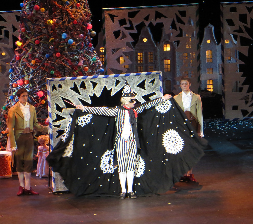 с главным творцом сказочного действа — Дроссельмейером, не добрым шутом, как получилось у А. Домашова, а остро-гротесковым, с гофмановским родимыми пятнами персонажем, как задумано у Григоровича, с пронзительной конгениальностью хореографии и музыки, с развернутой мужской партией, в которой есть драматургия и развитие, с вдохновенным адажио и впечатляющей сольной частью.