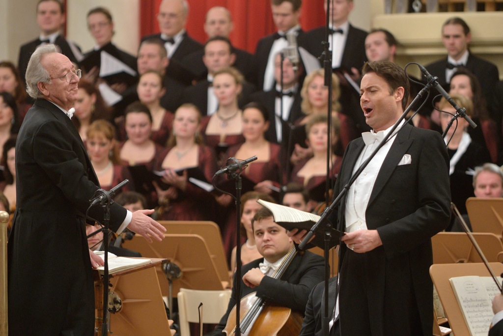 Публика совершенно отвлеклась от музыки, завороженная вкрадчивой пластикой одалиски, странно противоречащей невинно-застенчивому выражению лица и скромно опущенным ресницам Монтальво. Ее звонкий, лучащийся светом голос пленял богатством обертонов, но был, скорее, камерным, не слишком сильным. Весьма способствовало успеху концерта и могучее звучание соединенных хоров Михайловского театра, Смольного собора и Детского хора телевидения и радио, отлично спевших, благодаря стараниям руководителя, Владимира Беглецова.