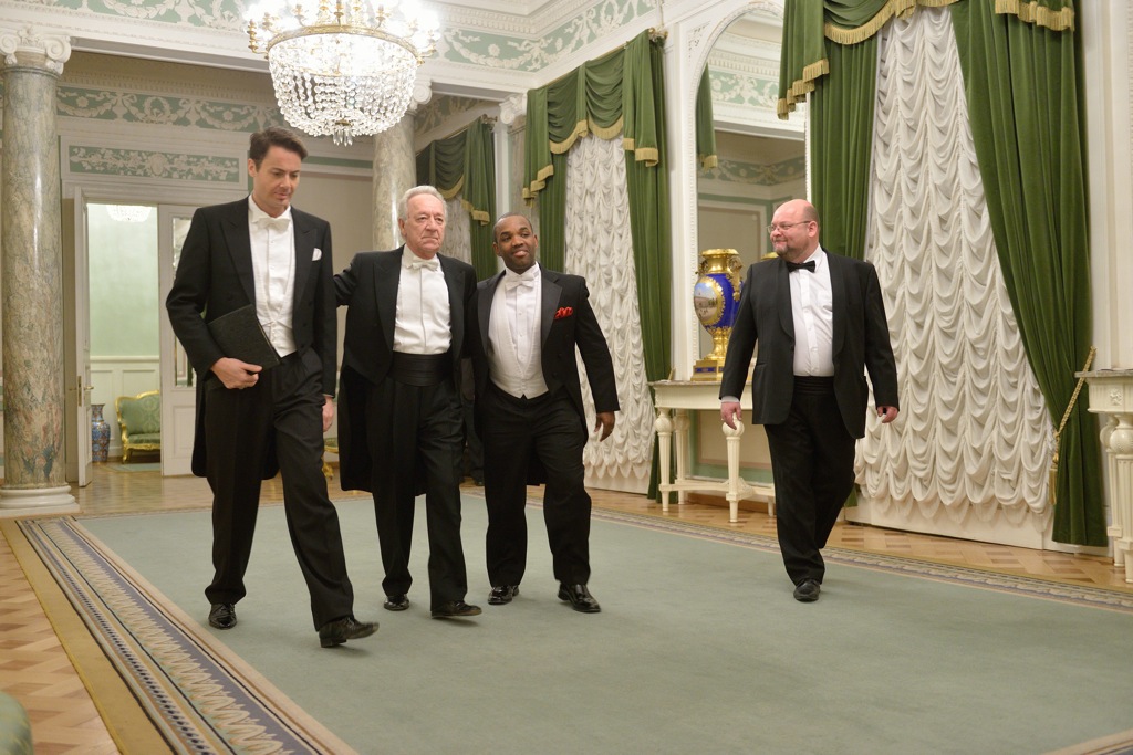 Организаторы не поскупились, и пригласили вполне приличных, довольно известных солистов: россиниевского тенора, афроамериканца Лоуренса Браунли (правда, в «Кармине буране» его партия ограничена одной-двумя фразами), немецкого баритона Йохена Купфера, который спел партию обстоятельно, качественно, артистично, порой переходя на хриплый говорок пейзанина. Он даже попытался создать некий сценический образ.