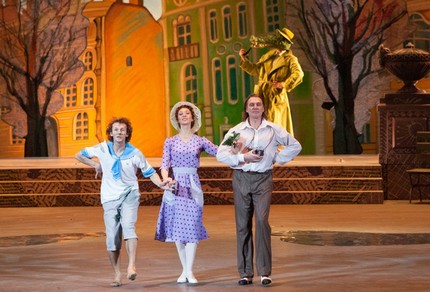Дело это не престижное и неблагодарное. Он написал авторское либретто, грамотно адаптировал стихи Чуковского для сцены, придумал забавные имена персонажам (Генерамылиус, Котобёнок, дождекаплики, Крокодядя, Грязнуля-толстуля, Грязнуля-красотуля, Улиционер, Человек-непогода) и сам нашел толкового художника, который «одел» все эти фантазии в красочные гиперреалистические «одежды» (люди-книжки, девушка-свечка, заводной мойдодыр на колесиках, «ходячие» брюки, куртка, чулки, ботинки, ностальгические проекции Питера на занавесе и проч.). Но сдав «сочинение» (в либретто есть и Анна Ахматова с ухажером, и Репин, и девушка с веслом и студент-африканец и прочая литературщина) на «отлично», Смекалов «засыпался» на математике.