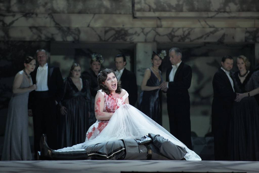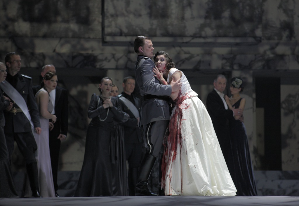 Ведь сэр Артур появляется на своей роковой свадьбе с Лючией в кителе правительственного чиновника гитлеровской администрации. Этот антифашистский посыл закрепляется пальбой из пистолета, сопровождающей исполнение знаменитой каденции, в финале которой Лючия шальной пулей убивает начальника охраны Норманна.