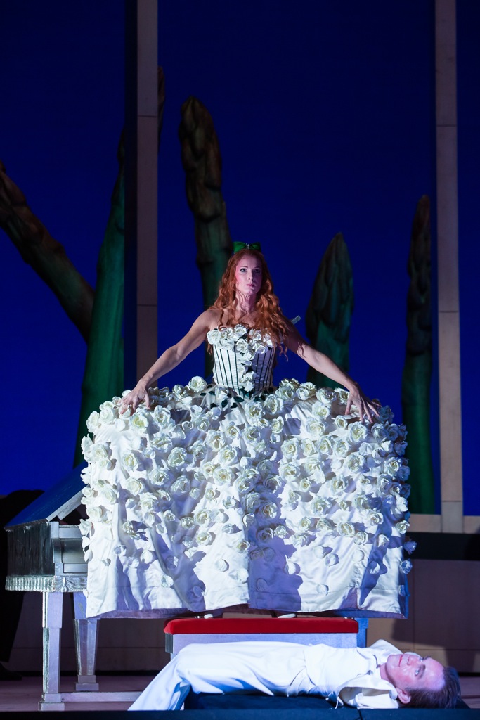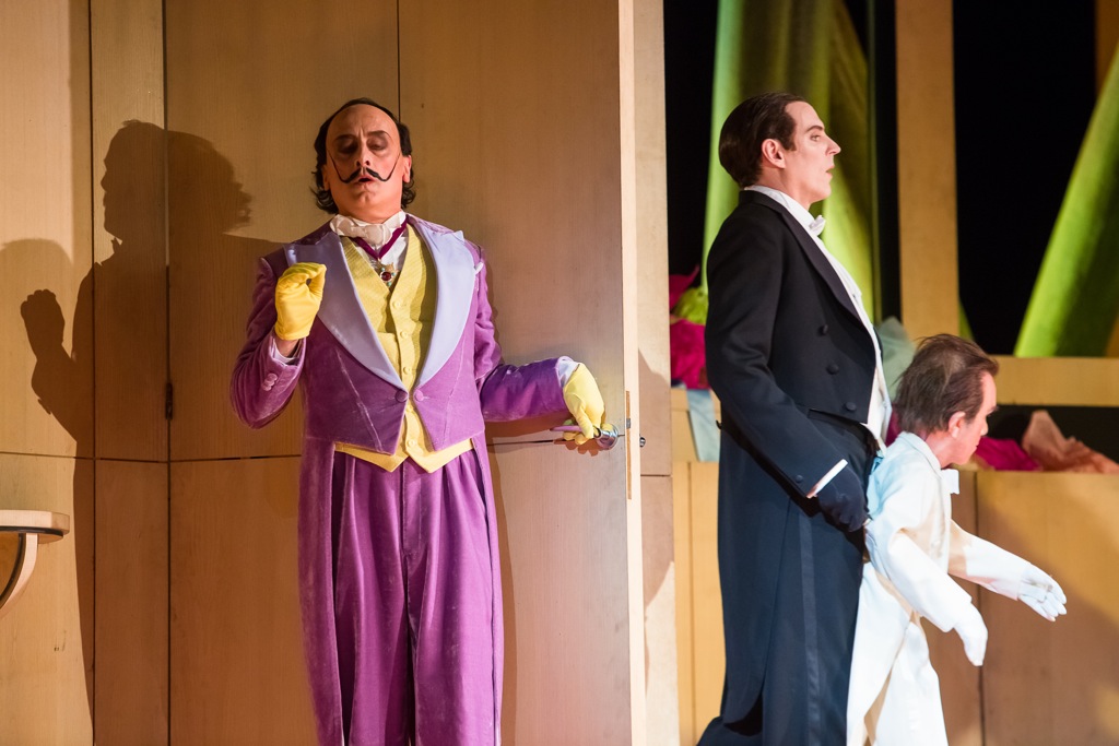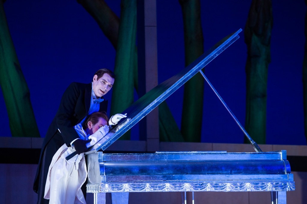 Постановщики в Парижской Опере пошли третьим путём: они сделали из исполнителя партии карлика одновременно и кукловода, ему приходится весь спектакль таскать по сцене куклу, в которой, кстати, нет ничего безобразного, она, скорее, даже симпатичная. Ноги куклы намертво привязаны к ногам певца, это сковывает его жесты. В результате он марширует по сцене из угла в угол.