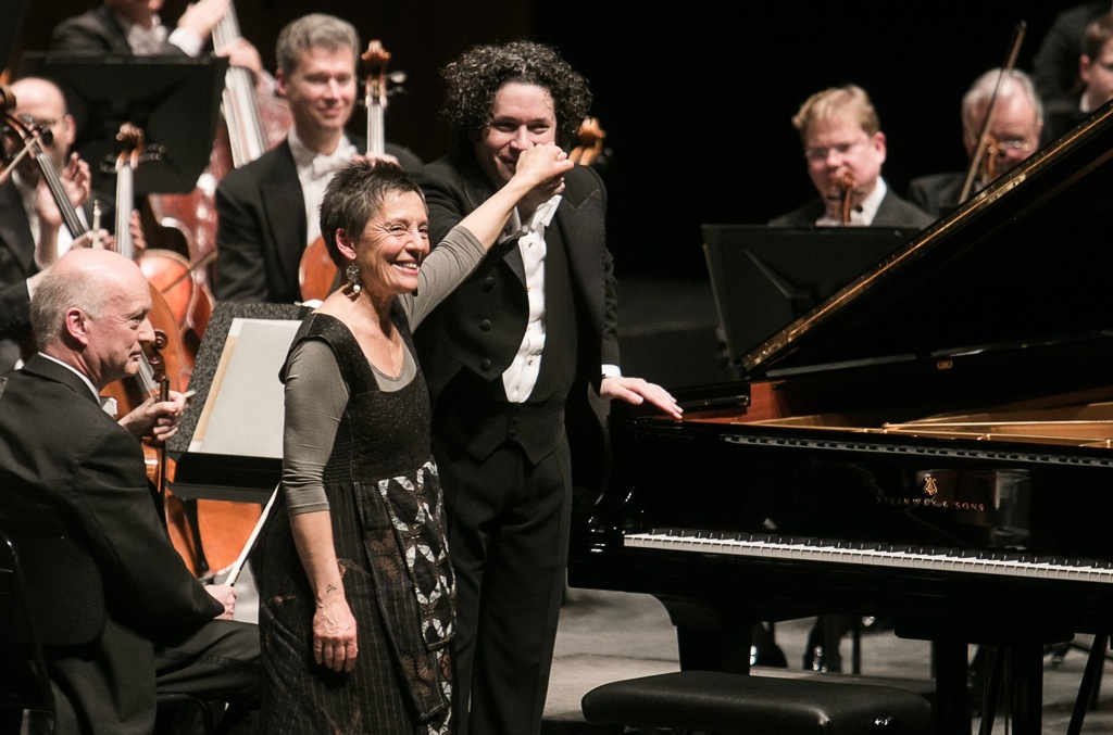 Дудамелю (или филармоникам, трудно сейчас сказать, кому именно хлопали) после «Posthorn-Serenade» аплодировали не менее азартно, хотя он свое выступление (далеко не дебютное) от и до провалил. Начал венесуэлец с Вагнера, замахнулся на «Зигфрид-идиллию». До сих пор я не уверена, поняли ли те люди, у которых не было в руках программки, что они в тот вечер слушали Вагнера. Потому что я сама ничего похожего на Вагнера так и не расслышала. Ре-минорный концерт Моцарта прозвучал неплохо — в силу участия Пиреш.