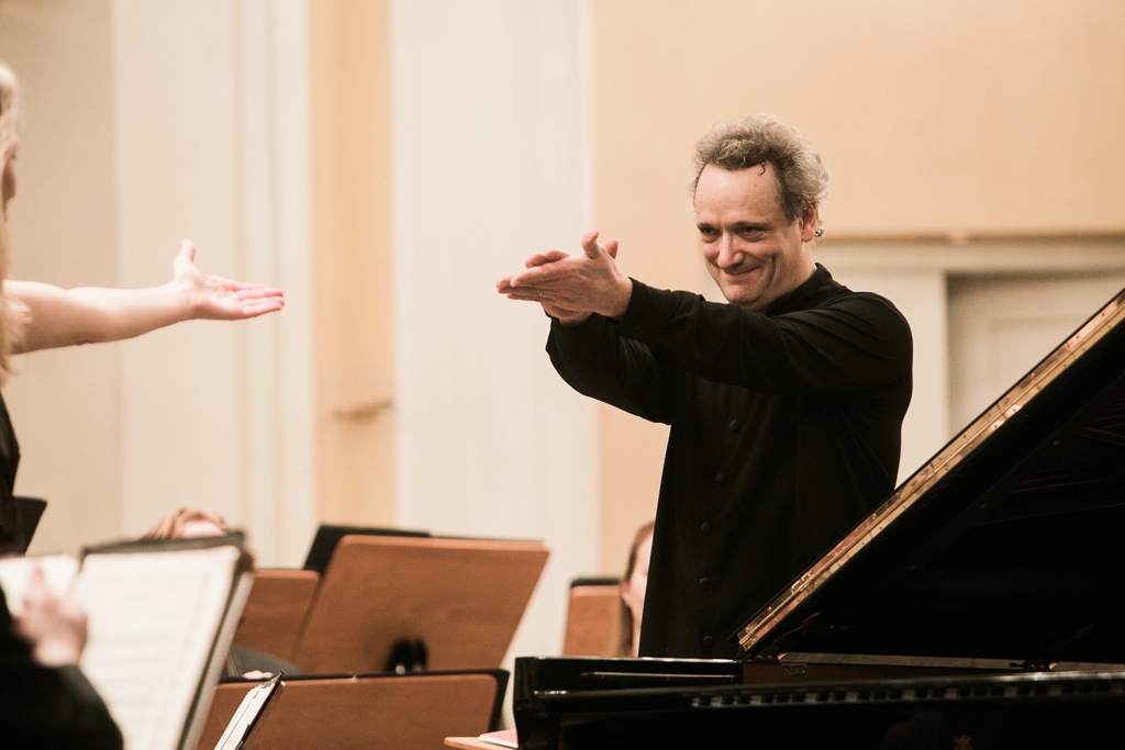 Его Моцарт (на других концертах, которых у музыканта все еще, несмотря на возраст, довольно много случается в год, Бетховен или Брамс) — это единственное средство коммуникации с миром, его язык общения. Моцарт совершенно бескостный, невесомый, безмятежный…