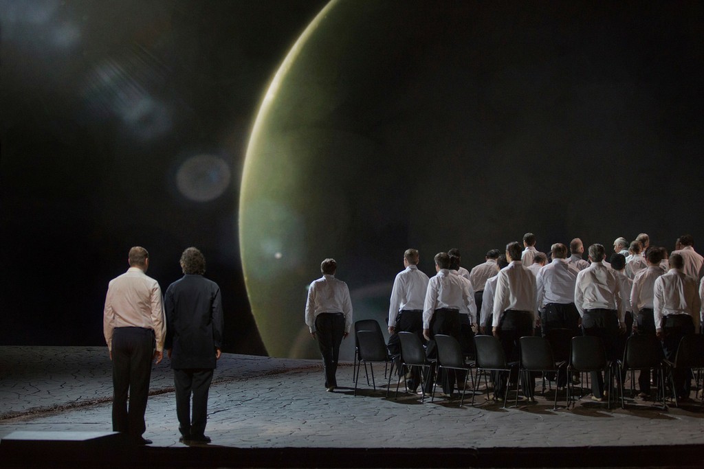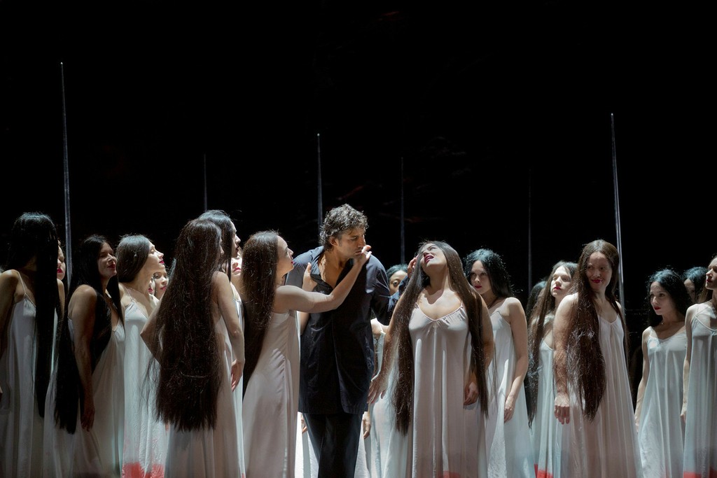 Эта по-вагнеровски притягательная музыкальная история на сей раз предстает просто в изумительной постановке франко-канадского режиссера Франсуа Жирара. В его достаточно обширную творческую команду входят сценограф Майкл Ливайн, художник по костюмам Тибо Ванкрэненбрёк, художник по свету Дэвид Фин, видеохудожник Питер Флэерти, хореограф Кэролин Чоу и даже… драматург Серж Ламот.