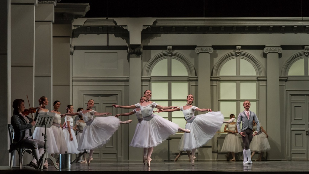 Из «Консерватории», сочиненной Бурнонвилем в 1848-м, взяли самую вкусную часть — дивертисмент в балетном классе. Под тихий шелест нот партитуры Х. С. Паулли (А. Бурнонвиль, будучи человеком очень музыкальным, работал, как и Ф. Тальони, только с театральными композиторами первого ряда) томные примы и «танцующий учитель» соревнуются в балетном классе в виртуозности, костюмированный скрипач в уголке залы правдоподобно «фальшивит», аккомпанируя «под ноги», и так далее в духе балетных зарисовок Э. Дега.