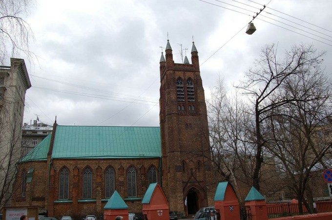Особый случай — англиканский Собор Святого Андрея, чья тёмно кирпичная башенка выделяется в Вознесенском переулке в самом центре Москвы.