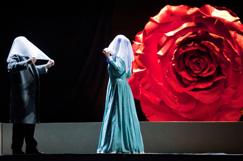 разводки банальны, мизансцены вычурны и зачастую ничем неоправданны. Одно дело вписать фигурки героев в готовую картинку «по мотивам Магритта», другое — создать напряжённую драматургию сценического действия.
