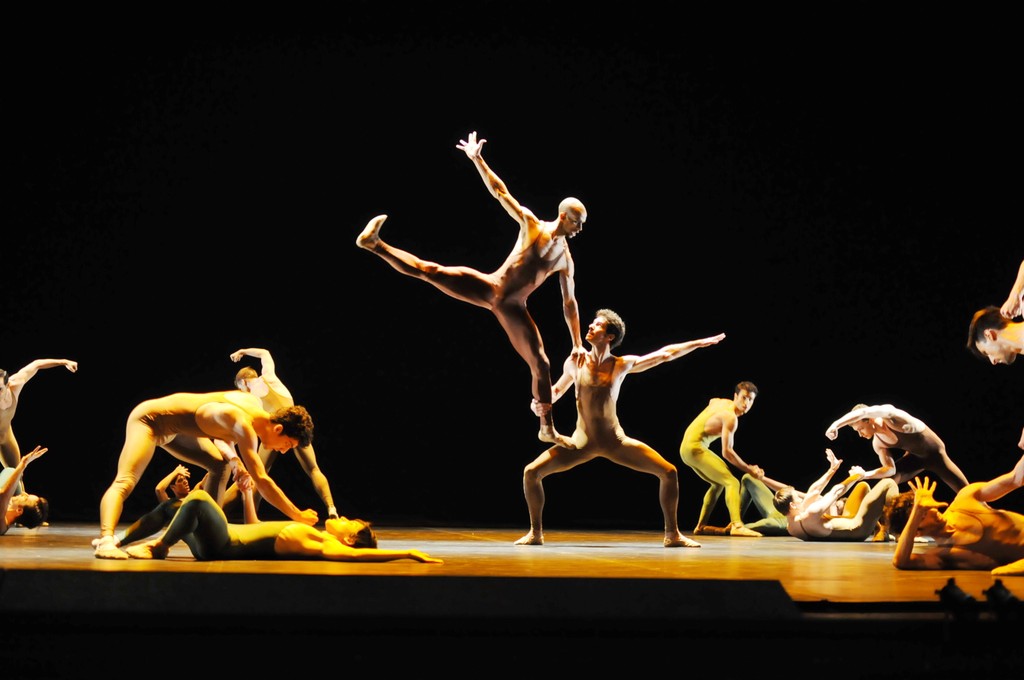 Хореограф занял в спектакле поровну мальчиков и девочек, следуя излюбленной идее о двух половинках, о китайских инь и янь, которые неизбежно встретятся и соединятся. Показал в рудиментарных, на первый взгляд простеньких и незамысловатых, но строго зарифмованных движениях, сначала типическую жизнь племенных самцов, которые выслеживают добычу, обнюхиваются, дерутся за самок, надрывно прыгая, сталкиваясь в воздухе торсами, а потом более размеренную и как бы более духовную, более религиозную и созерцательную жизнь женщин. В каждой гендерной команде есть по лидеру, которые должны соединиться и стать символом нерушимого священного союза.