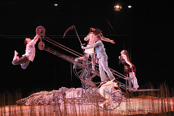 это невербальный театр, в котором музыка, сценография, искусство костюма (!), пластика, танец, свет, цирковое искусство представляют собой синтез искусств.