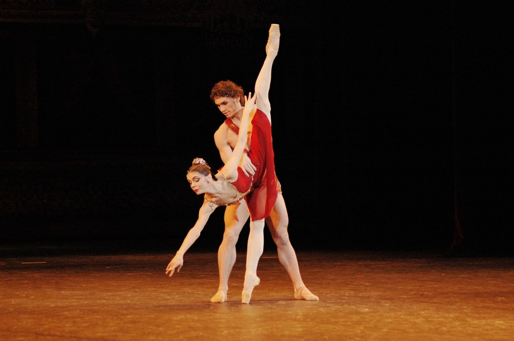 Екатерина Шипулина и Егор Хромушин станцевали Адажио Мехменэ Бану и Ферхада из балета «Легенда о любви» (на фото). Балет не значится в репертуаре — поэтому фрагмент из него в исполнении Шипулиной, которая много лет занималась в классе у Кондратьевой и подготовила с ней большинство своих балеринских ролей, — приятный раритет. Хотя, в целом, из «Легенды» не стоит вырывать фрагменты, они смотрятся в гала как церковная фреска, срезанная со стены и перенесенная в музей.