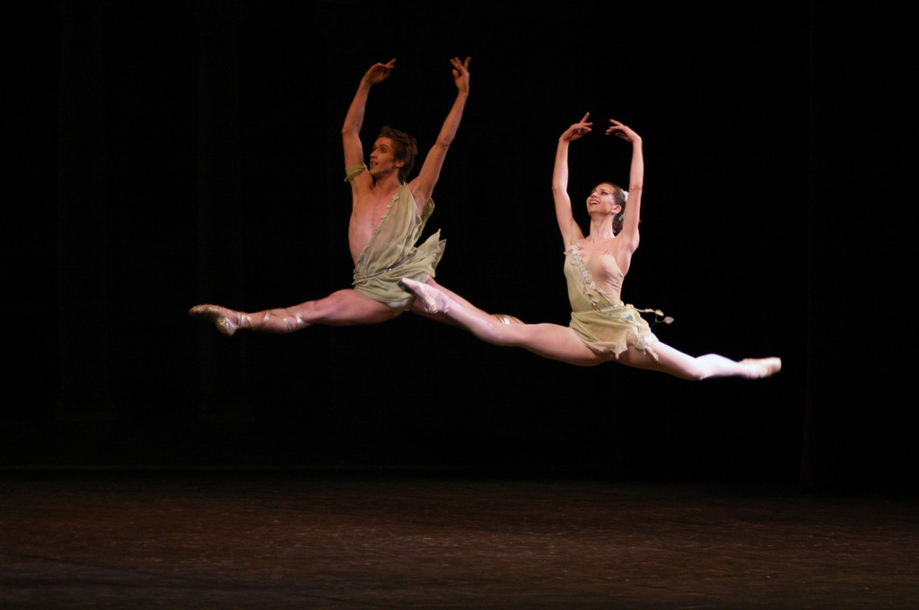 Озорные «Весенние воды» на музыку С. Рахманинова в хореографии А. Мессерера, в которых блистала Марина Кондратьева. На фото — Анна Тихомирова и Андрей Меркурьев (вариант прошлого «Кондратьева-гала»), в этом концерте партнером Тихомировой выступил Артем Овчаренко. Тихомирова начала заниматься в театре с Кондратьевой, сейчас работает с Надеждой Грачевой, одной из самых ярких учениц Марины Викторовны в прошлом. Линия преемственности очень чувствуется.